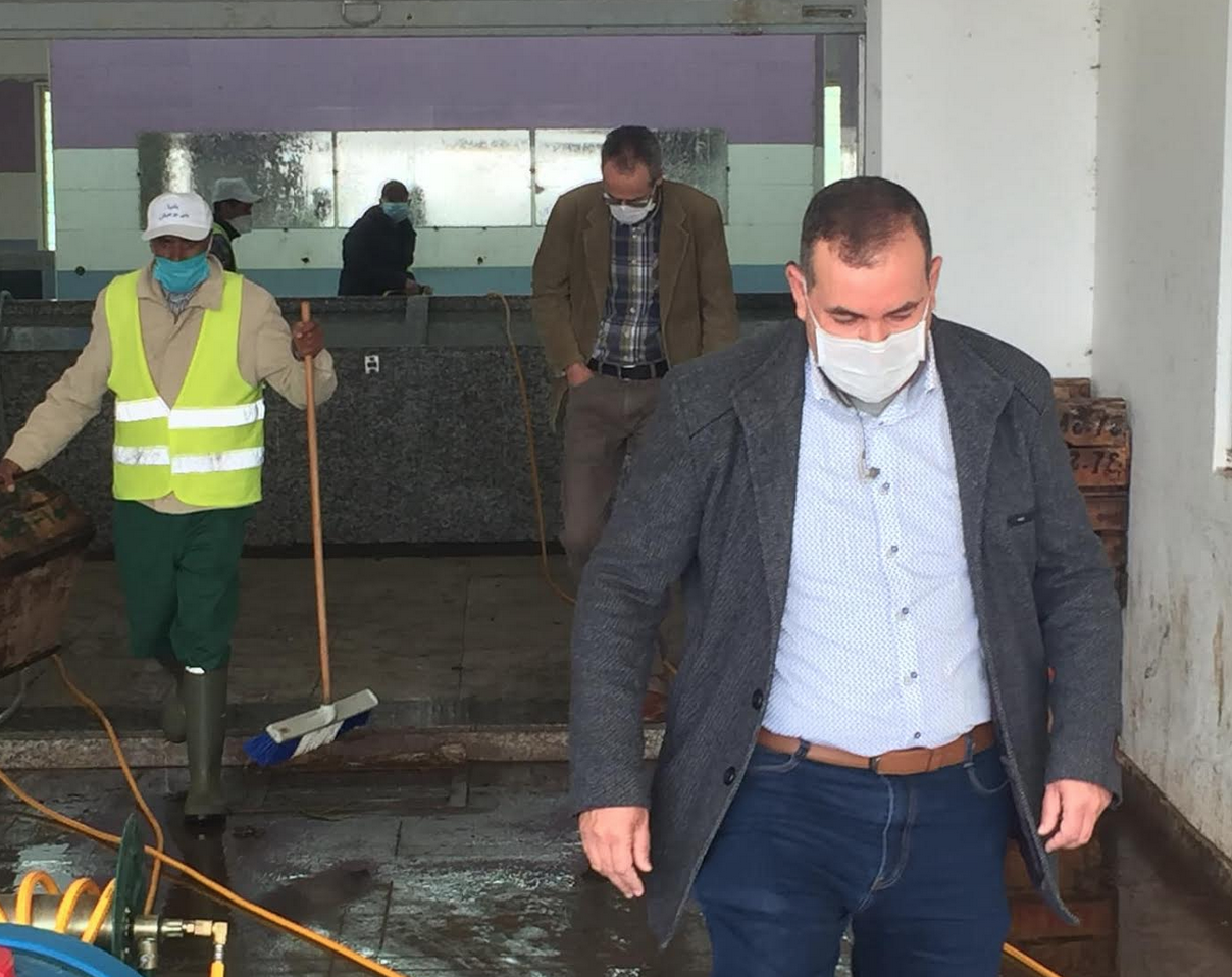 وفي هذا الإطار، وتحت الإشراف الفعلي للسيد سعيد أكروح، ووسط أجواء كبيرة من الإحساس بالمسؤولية ضمن الظرفية الراهنة، جرت عملية تنظيف جناح بيع الأسماك وتعقيمه، حيث شارك عدد أفراد في هذه العملية التي استهدفت مرفقا أساسيا بالنسبة لساكنة بني بوعياش.
