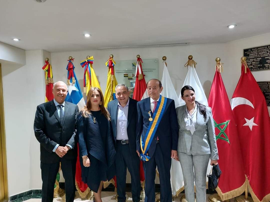 تجدر الاشارة، الى أن هذا اللقاء الذي تميز بحضور سفيرة جلالة الملك بجمهورية كولومبيا، السيدة فريدة الأوداية، عرف توشيح المستشار البرلماني عبد القادر سلامة، بوسام التقدير والاستحقاق، من طرف الجمعية العامة للبرلمان الأنديني، نظير جهوده وجهود مجلس المستشارين والبرلمان المغربي ككل في الارتقاء بالعلاقات البرلمانية مع البرلمان الأنديني وبلدان أمريكا اللاتينية والكراييب.