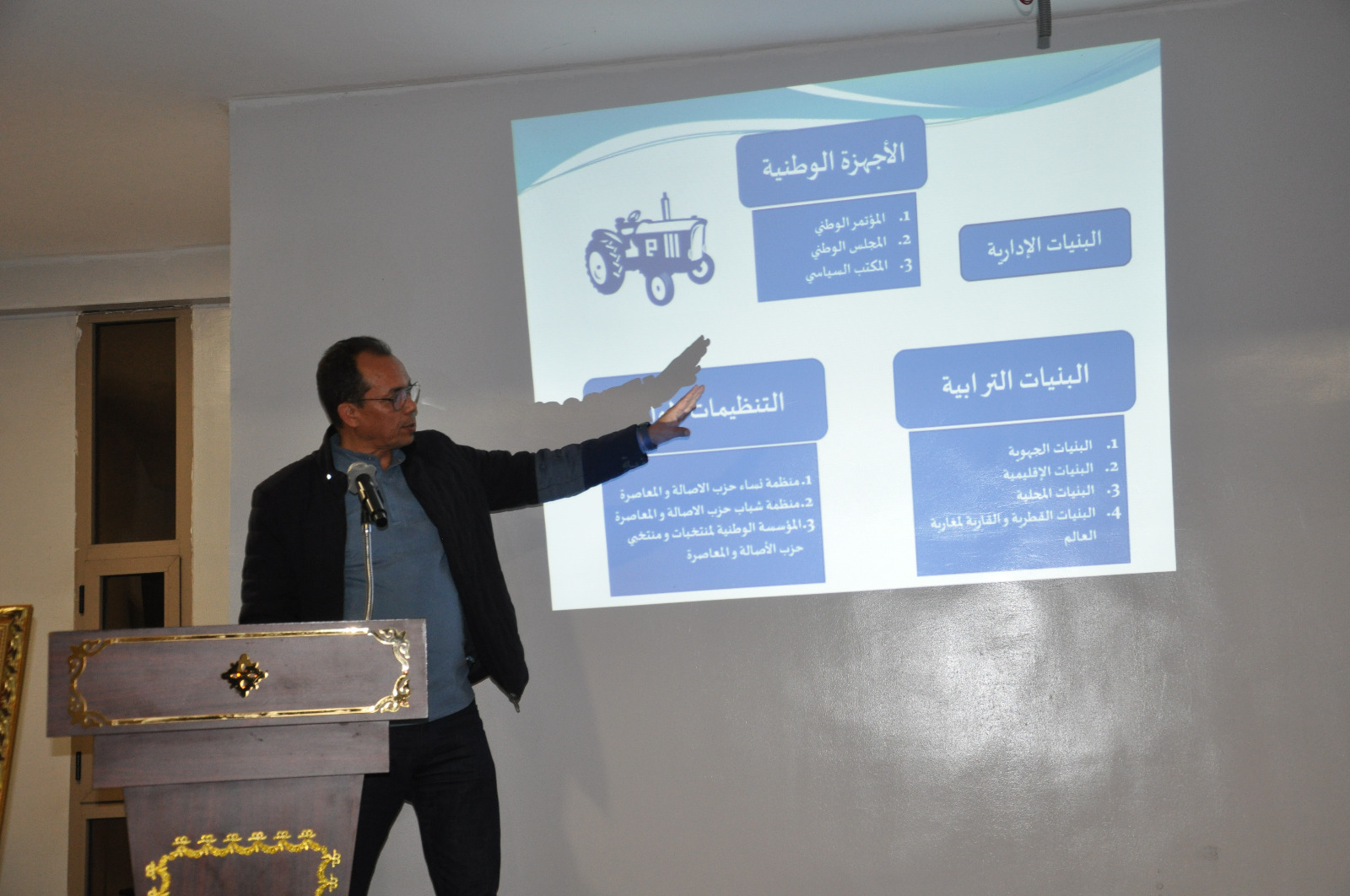 كما شهد اللقاء إلقاء السيد الوافي العميمي لعرض حول منجزات مجلس عمالة إنزكان أيت ملول الذي يترأسه حزب الأصالة و المعاصرة، ليختتم اللقاء بعرض حول الهيكلة التنظيمية للحزب والخريطة السياسية للحزب بجهة سوس- ماسة من تنشيط المدير الجهوي أحمد اوزيك بسط خلالها المكتسبات والوضعية السياسية للحزب وآفاق البناء التنظيمي وسط حضور مكثف ونوعي لمناضلي الحزب بالإقليم؛ تداولوا خلاله دعم وتشجيع المشاركة السياسية للشباب والنساء باعتبار أن الحزب يشجع تجديد النخب وقضية المرأة قضية مركزية ومحورية في بناء الديمقراطية والتنمية المستدامة.