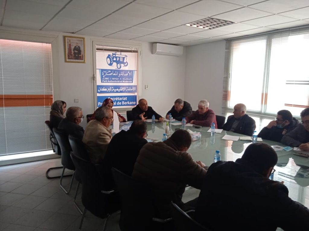 احتضن المقر الإقليمي لحزب الأصالة والمعاصرة بإقليم بركان، يوم الأحد 28 فبراير 2021، لقاء تنسيقيا، بإشراف من النائب البرلماني محمد إبراهيمي الأمين الإقليمي للحزب محمد ابراهيمي، وبحضور النائبة البرلمانية آمال عربوش، وأعضاء جماعة بركان وأعضاء المجلس الوطني، إضافة إلى فعاليات الحزب من شباب ونساء.