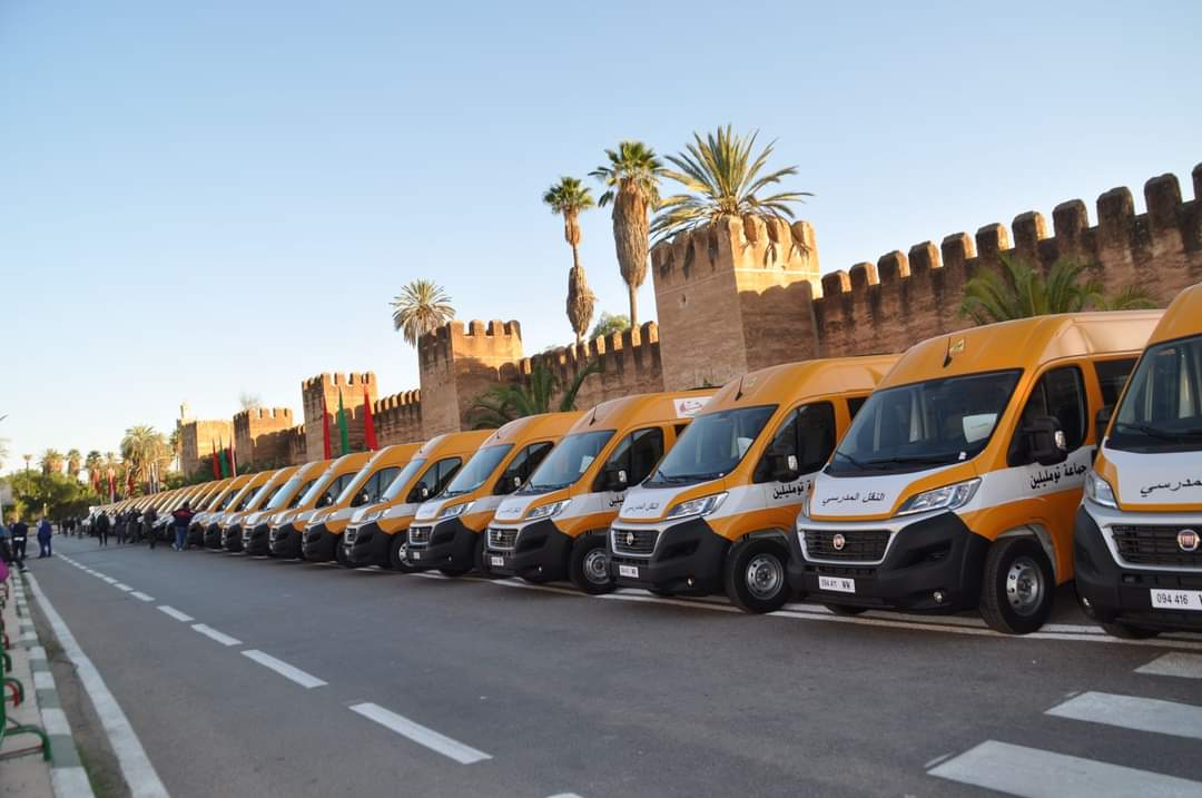 وتم توزيع عدد من الحافلات النقل المدرسي على الجماعات، بلغ عددها 36 حافلة منها 22 حافلة تم اقتناؤها في إطار المبادرة الوطنية للتنمية البشرية (برنامج الدفع بالرأسمال البشري للأجيال الصاعدة)، و 14 حافلة تم اقتناؤها في إطار (برنامج تقليص الفوارق الإجتماعية والمجالية بالعالم والقروي) بتمويل من صندوق التنمية القروية، إذ ستسهم هذه المبادرة الهامة في دعم التمدرس ومحاربة الهدر المدرسي على مستوى إقليم تارودانت. كما ستمكن من سد الخصاص على مستوى الجماعات التي تعاني من إشكالية النقل المدرسي خاصة بالعالم القروي