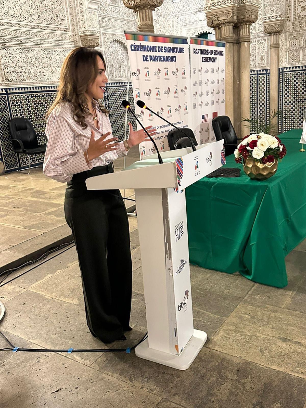 كما تم بالمناسبة توقيع اتفافية شراكة وتعاون بين “جمعية تيبو أفريقيا” وجامعة الحسن الثاني والجامعة الأمريكية أكرون تهدف إلى تطوير تبادل التجارب والخبرات بين الطلبة المغاربة ونظرائهم الأمريكيين في مجال ريادة الأعمال الرياضية.