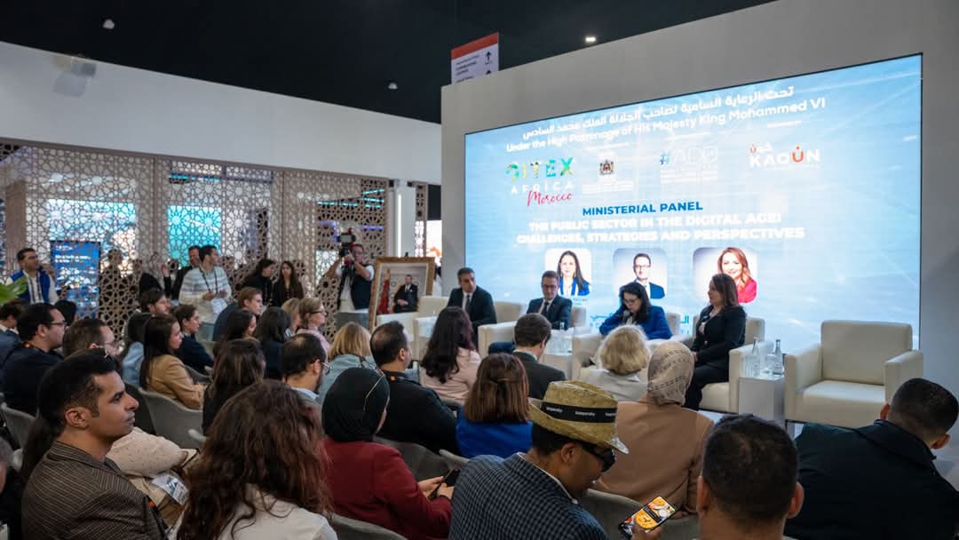 على هامش النسخة الثالثة من معرض جيتكس إفريقيا، التي تحتضن فعاليته مدينة مراكش تحت الرعاية السامية لصاحب الجلالة الملك محمد السادس نصره الله، شاركت وزيرة الانتقال الرقمي وإصلاح الإدارة السيدة أمل الفلاح السغروشني في جلسة حوارية برواق المغرب الرقمي في موضوع: “القطاع العام في العصر الرقمي: التحديات، الاستراتيجيات، والآفاق”، وذلك بمعية السيد ستيفان شنور، كاتب الدولة الألماني المكلف بالرقمنة والنقل، والسيدة هاجر الحداوي، المديرة العامة لمنظمة التعاون الرقمي.