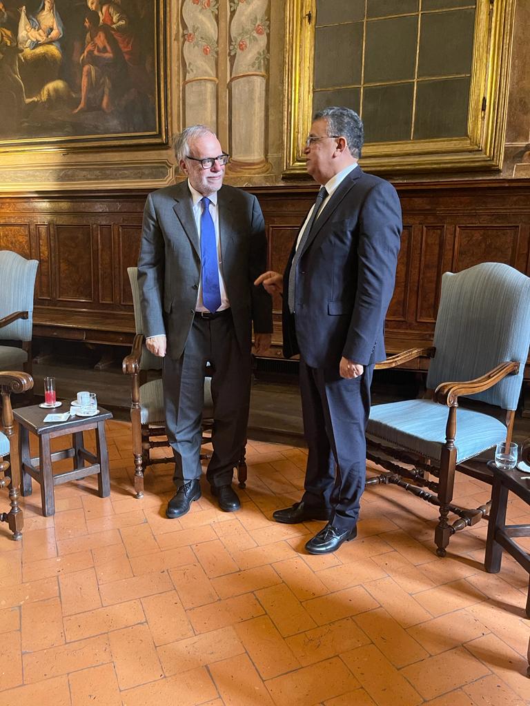 عقد وزير العدل السيد عبد اللطيف وهبي، يومه الخميس 2 مارس 2023، بالعاصمة الإيطالية روما، لقاء مع السيد أندري ريكاردي وزير التعاون الدولي الإيطالي السابق/ مؤسس المنظمة الدولية غير الحكومية “سانت إيجيديو”.