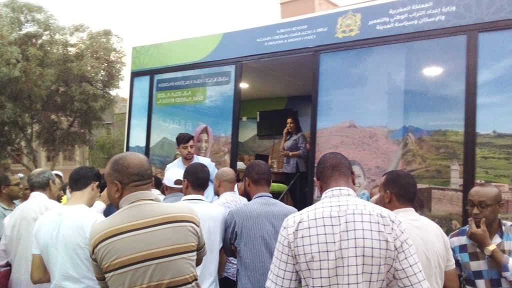 ورافقت لماوي القافلة في الجولات الميدانية التي قامت بها بالسوق الأسبوعي تمدلين بجماعة “ايت زينب” ومركز جماعة “امرزگان” ثم اكويم بجماعة “اغرم نوگدال” ثم جماعة “ترميكت”، ومركز جماعة “سكورة”، حيث تم التواصل المباشر مع ساكنة الجماعات المذكورة، والانصات إليهم، وتعريفهم بالخدمات التي تقدمها الوكالات الحضرية، وشرح الإجراءات والمساطر الجاري بها العمل في ميدان البناء والتعمير خاصة في الوسط القروي، والجهود التي تبذلها وزارة إعداد التراب الوطني والتعمير والإسكان وسياسة المدينة، لتأطير حركية التعمير والبناء بالوسط القروي، والمجهودات المبذولة للرفع من مستوى الخدمات المقدمة للمرتفقين والمستثمرين في مجال التعمير والعقار، للمساهمة في تحقيق التنمية المنشودة بالعالم القروي.