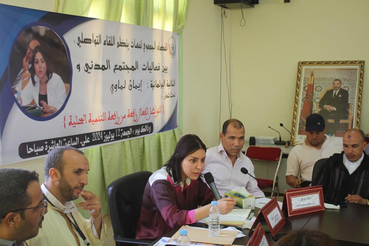 وبعد الاستماع لجميع المطالب، أكدت لماوي استعدادها المستمر للترافع عن كل القضايا والمشاكل التي تعرفها الجماعة بقبة البرلمان ولدى الحكومة والمؤسسات العمومية.