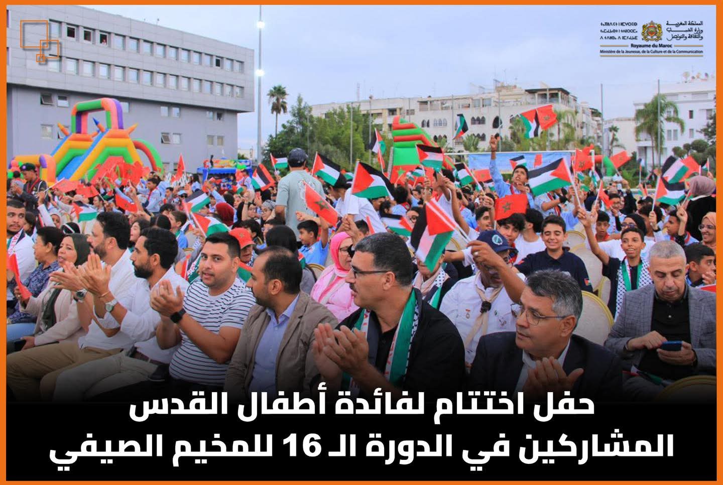 اختتمت، يوم الأحد 24 غشت الجاري، فعاليات الدورة الـ 16 للمخيم الصيفي لفائدة أطفال القدس، دورة “حارة المغاربة”، الذي تنظمه وكالة بيت مال القدس الشريف، تحت الرعاية السامية لصاحب الجلالة الملك محمد السادس، رئيس لجنة القدس.