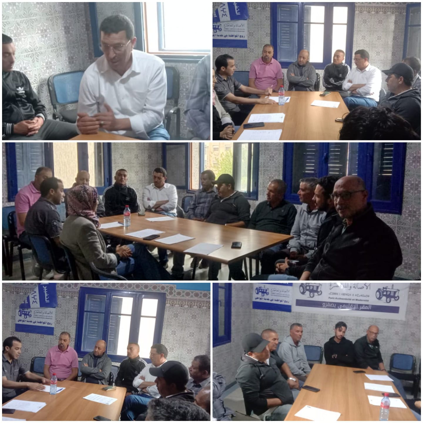 الاجتماع خصص لتدارس الوضعية التنظيمية للحزب بدائرة صفرو، ومناقشة الوضعية التنظيمية خاصة ما يتعلق بالانخراطات واستقبال الالتحاقات الجديدة التي عبرت عن انخراطها في صفوف الحزب، إضافة لمناقشة قضايا تهم الشأن المحلي ببلدية وجماعات دائرة صفرو.