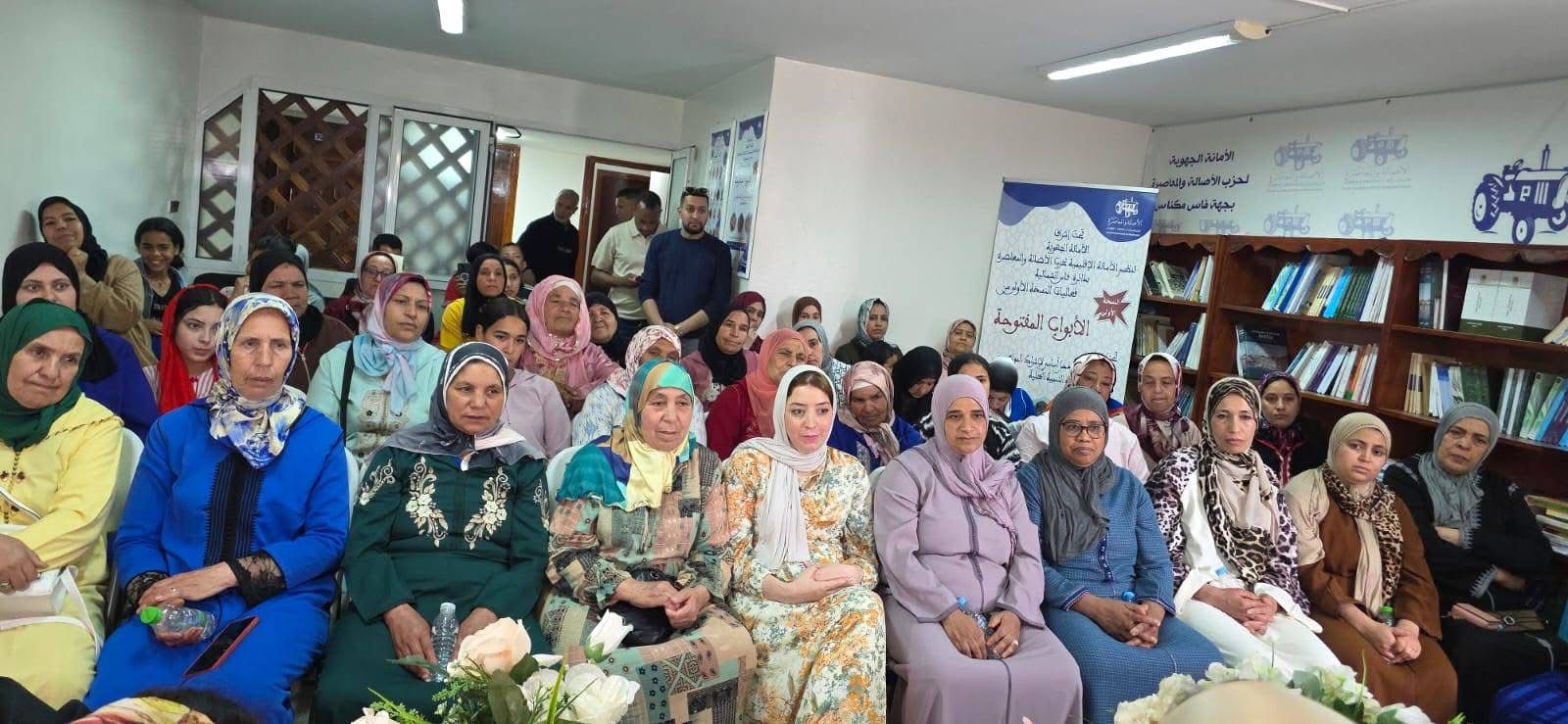 في إطار الدينامية التواصلية التي يباشرها حزب الأصالة والمعاصرة بجهة فاس- مكناس، وانسجاما مع سياسة القرب والإنصات لانشغالات المواطنين والمواطنات، نظمت الأمانة الإقليمية للحزب بدائرة فاس الشمالية، بتنسيق مع الأمانة المحلية بمقاطعة المرينيين، لقاء تواصليا مع نساء حي الأمل، وذلك يوم الأحد 19 أبريل 2026 بالمقر الجهوي للحزب بفاس.