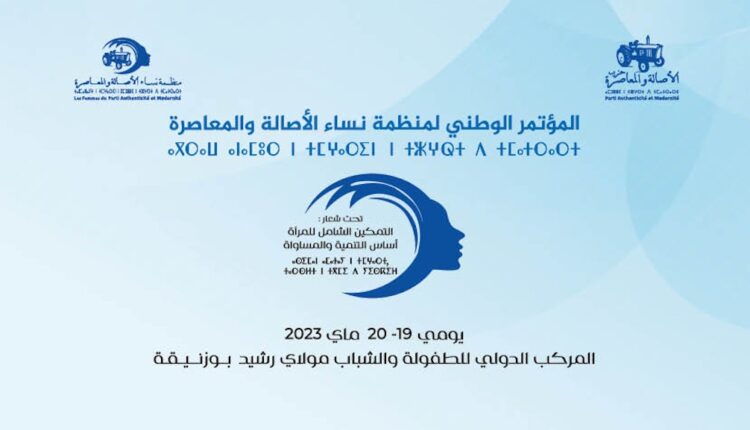 ينظم حزب الأصالة والمعاصرة المؤتمر الوطني لمنظمة نساء الحزب، تحت شعار “التمكين الشامل للمرأة أساس التنمية والمساواة”، وذلك يومي 19 و20 ماي 2023، بالمركب الدولي مولاي رشيد للطفولة والشباب ببوزنيقة.
