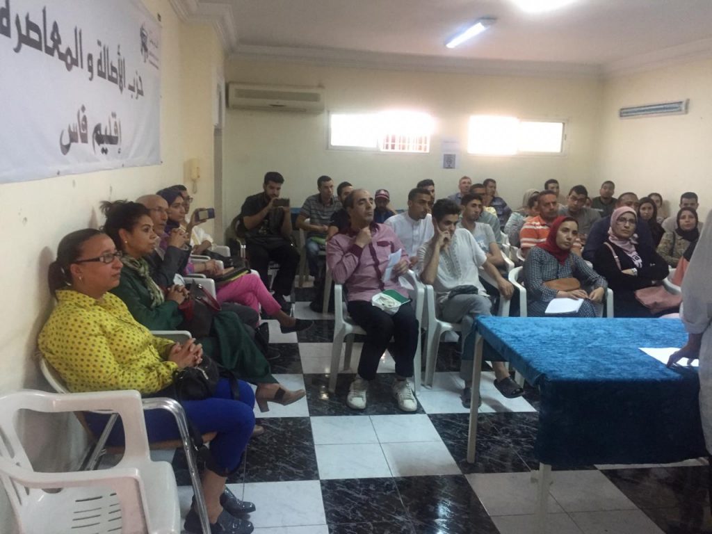 نظمت تنسيقية الأصالة والمعاصرة لمهنيي قطاع التعليم الخصوصي بفاس، يوم الجمعة 17 ماي 2019، الحصة العاشرة من الحصص التربوية التكوينية بالمقر الإقليمي لحزب الأصالة والمعاصرة بفاس، والتي تميزت بتقديم درس تطييقي في الرياضيات للأستاذ المتدرب والعضو بالمكتب الاداري بالتنسيقية بوشتى فالح، وذلك بحضور النائبة البرلمانية ثورية فراج وإدريس محبوب مؤطر التكوين، وفؤاد الشركي رئيس المكتب الإقليمي لمنظمة الشباب ونائبه الزبير الكرداشي، إضافة إلى مجموعة من عضوات وأعضاء مكتب التنسيقية.