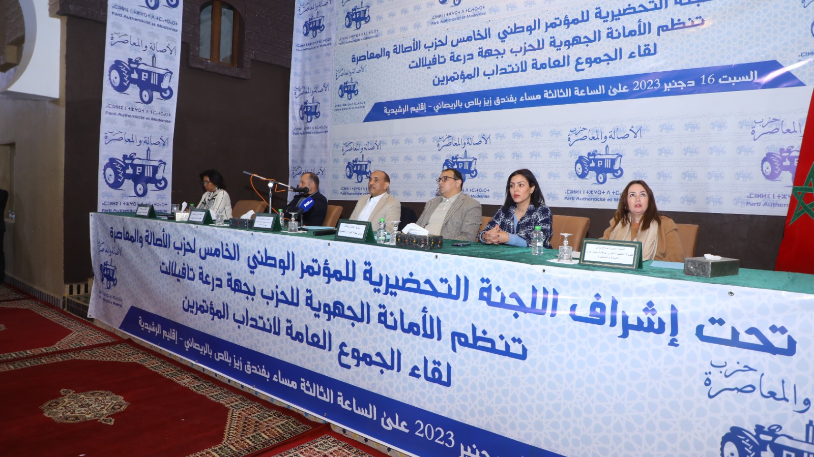 وفتح اللقاء الجهوي الذي حضره الأمين الجهوي للبام بجهة درعة تافيلالت مولاي مصطفى العمري، ورئيس لجنة فرز العضوية المنبثقة عن اللجنة التحضيرية للمؤتمر الوطني الخامس عادل بركات وعضوي المكتب السياسي ليلى بيلغة والعربي المحرشي، وبرلمانيين وبرلمانيات، وأعضاء المجلس الوطني، ومنتخبين ومنتخبات ومناضلي ومناضلات الحزب بالجهة، (فتح) نقاشاً حول المذكرة التي أصدرتها اللجنة التحضيرية للمؤتمر الوطني الخامس بشأن مسطرة انتداب المؤتمرين.