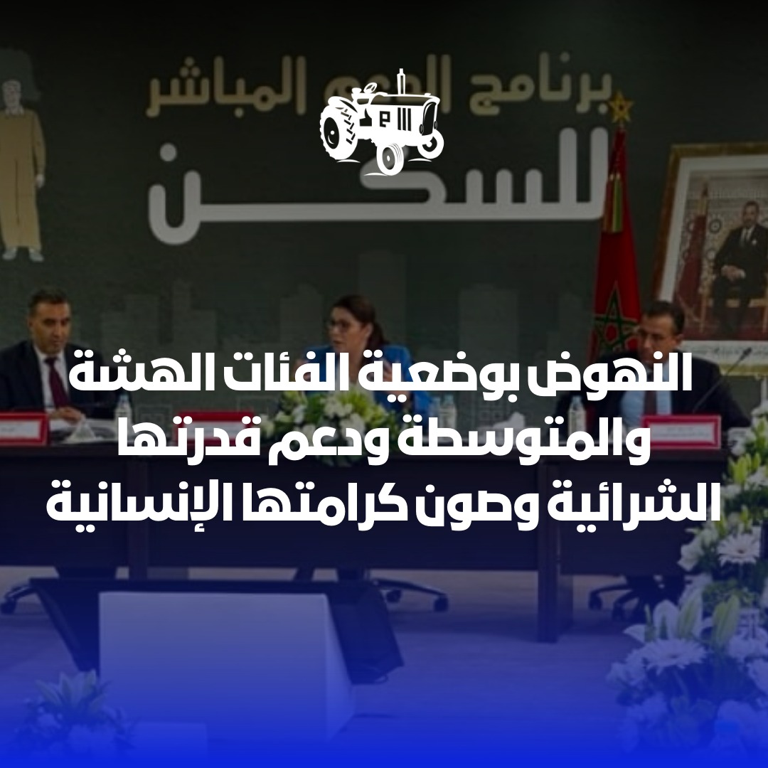 في نفس السياق الاجتماعي الهادف إلى النهوض بوضعية الفئات الهشة والمتوسطة ودعم قدرتها الشرائية وصون كرامتها الإنسانية، فعلت الحكومة مطلع السنة الجارية البرنامج الملكي للدعم المباشر لاقتناء السكن الرئيسي، والذي يشمل الفئات الاجتماعية ذات الدخل المنخفض والطبقة المتوسطة، لتيسير ولوجها إلى سكن رئيسي يستجيب لتطلعاتها، وهو ما سيمكن من تحسين ظروف عيش حوالي 110.000 أسرة سنويا، بغلاف مالي سنوي قدره 9,5 مليار درهم لمدة السنوات الخمس المقبلة.