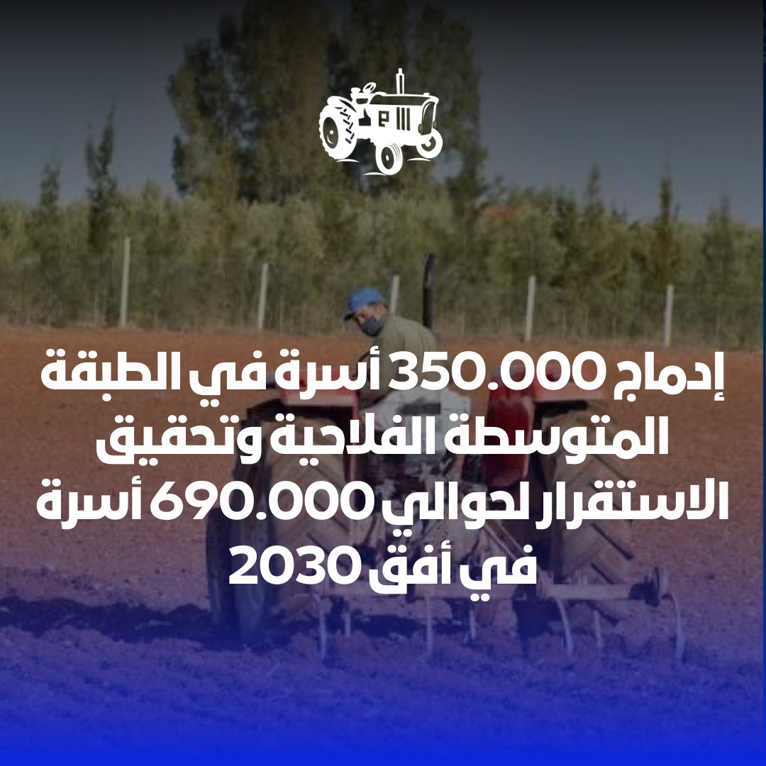 على الرغم من الاضطرابات المناخية والدولية الصعبة التي واجهها القطاع الفلاحي، فقد سجلت استراتيجية ” الجيل الأخضر ” تحولات انتقالية للفلاحة الوطنية تروم إدماج 350.000 أسرة في الطبقة المتوسطة الفلاحية، وتحقيق الاستقرار لحوالي 690.000 أسرة في أفق 2030، وتدعم الحكومة هذا المجهود من خلال تعميم AMO على 1.4 مليون مستفيد نهاية 2023، مع رفع الحد الأدنى للأجر الفلاحي SMAG بنسبة % 15 خلال سنتي 2022 و2023، ومواصلة تحفيز التشغيل الفلاحي لتحقيق هدف 350.000 منصب شغل جديد في أفق 2030.