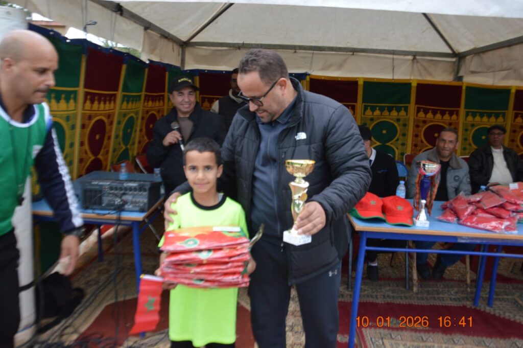 واختتمت التظاهرة بحفل توزيع الجوائز، حيث جرى تسليم الكؤوس والميداليات والبدل الرياضية على الفرق المشاركة، بحضور آباء وأمهات وأولياء أمور اللاعبين الذين عبروا عن إعجابهم بالملعب الجديد وبجودة التنظيم، مشيدين بالمجهودات التي بذلتها الأطر الرياضية والمدربين لإنجاح هذا الحدث.
