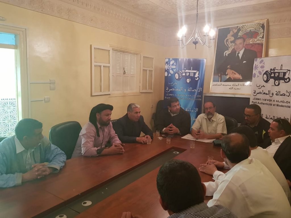 عقدت اللجنة التحضيرية الجهوية المكلفة بالإعداد للقاء التواصلي الداخلي لحزب الأصالة والمعاصرة بجهة كلميم واد نون، والمقرر تنظيمه يوم الأحد 31 مارس 2019، (عقدت) يوم السبت 16 مارس 2019 بالمقر الجهوي للحزب بكلميم، إجتماعا لمناقشة مجموعة من الأمور التنظيمية التي تهم اللقاء، وذلك بحضور ممثلي الأمانات الاقليمية للحزب بالجهة.