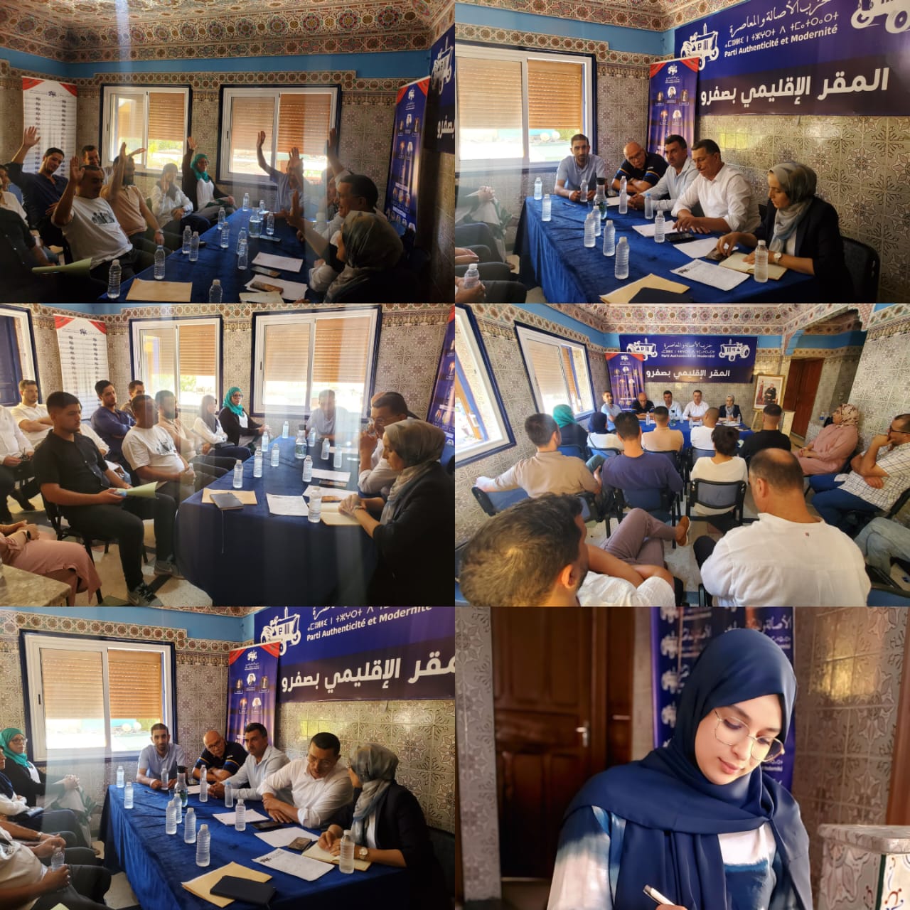 عقد حزب الأصالة والمعاصرة، يوم الأحد 14 شتنبر 2025، جمعا عاما إقليميا بالمقر الإقليمي للحزب بصفرو، خصص لانتداب المؤتمرات والمؤتمرين الذين سيمثلون الإقليم في المؤتمر الوطني لمنظمة شباب الأصالة والمعاصرة، المزمع عقده أواخر شهر شتنبر الجاري بمدينة بوزنيقة.