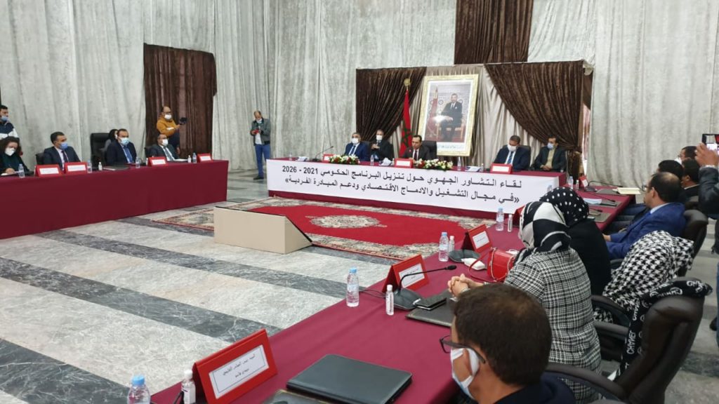 مواصلة للقاءات التشاورية من أجل تنفيذ البرنامج الحكومي 2026-2021 في مجال التشغيل والإدماج الاقتصادي ودعم المبادرة الفردية، عقد وزير الإدماج الاقتصادي والمقاولة الصغرى والتشغيل والكفاءات، يونس السكوري؛ يوم الأربعاء 24 نونبر2021 بمقر ولاية الجهة، لقاء تشاوريا بحضور عدد كبير من المنتخبين والمسؤولين والفاعلين.