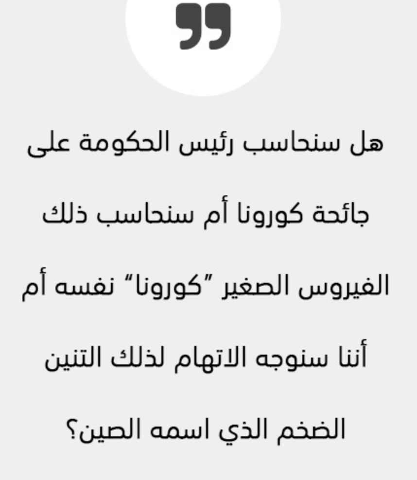 هل سنحاسب رئيس الحكومة على جائحة كورونا أم سنحاسب ذلك الفيروس الصغير “كورونا” نفسه أم أننا سنوجه الاتهام لذلك التنين الضخم الذي اسمه الصين؟