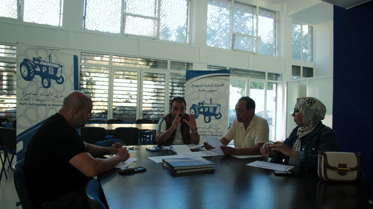 جاء ذلك، بعد ان اجتمع كمال اسبيري رئيس المجلس الجهوي للحزب ونائبيه جهاد حجاوي وحكيم العنايت، بمعية المدير الجهوي للحزب أحمد أوزيك، بعد زوال أول أمس الاثنين 11 نونبر الجاري، بالمقر الجهوي للحزب بأكادير، تم خلاله تدارس تشكيل اللجان الوظيفية والموضوعاتية وتسطير برنامج عقد اجتماعاتها لاتمام هيكلتها.