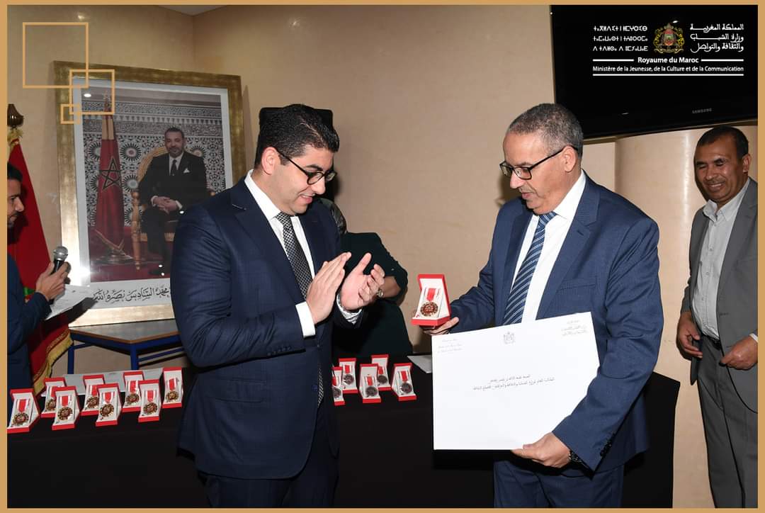 أشرف، وزير الشباب والثقافة والتواصل، محمد المهدي بنسعيد، على توزيع الأوسمة الملكية على المنعم بها من موظفي الوزارة اعترافا بالخدمات الجليلة التي أسدوها للوطن، وتقديرا لأدائهم المتميز، وتثمينا لجهودهم القيمة.