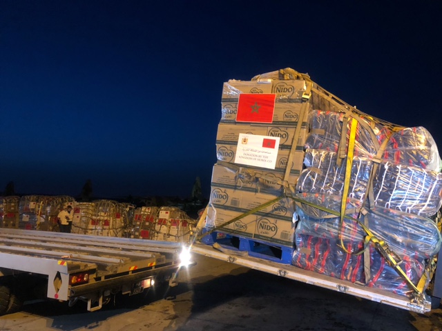 توجهت مساء امس السبت من المطار العسكري بمدينة القنيطرة أربع طائرات عسكرية نحو العاصمة الأردنية عمان وجمهورية مصر، محملة بما مجموعه، 40 طن من المساعدات الانسانية الطارئة الموجهة إلى السكان الفلسطينيين في الضفة الغربية وقطاع غزة.