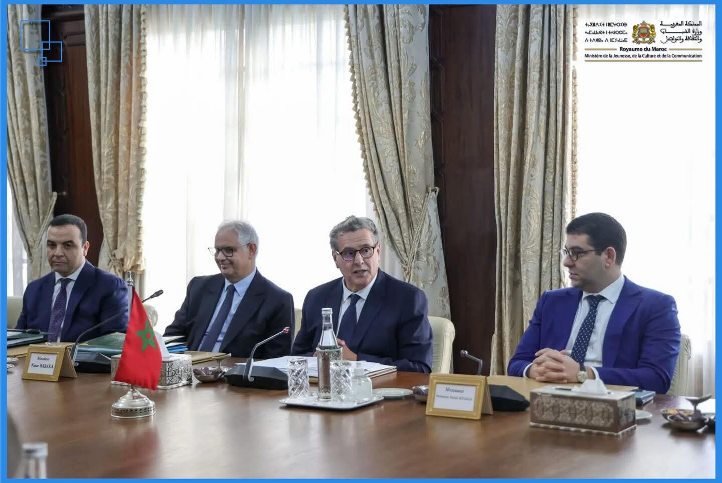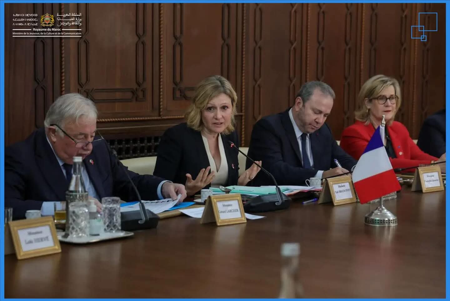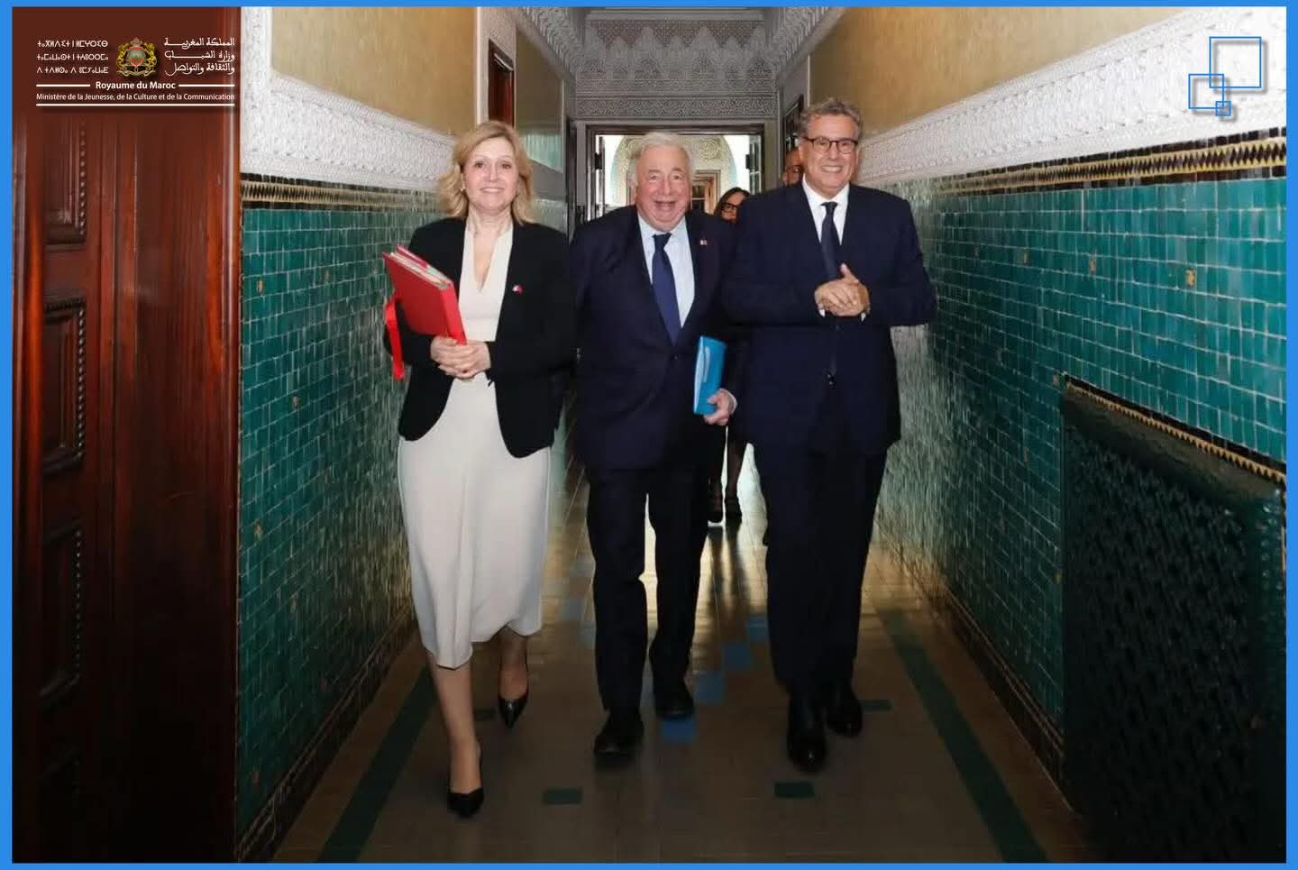 شارك، وزير الشباب والثقافة والتواصل، محمد المهدي بنسعيد، في استقبال رئيسة الجمعية الوطنية الفرنسية، السيدة يائيل برون-بيفي، ورئيس مجلس الشيوخ الفرنسي، السيد جيرار لارشي، اللذين يقومان بزيارة رسمية إلى المملكة على رأس وفد برلماني مشترك، للمشاركة في أشغال الدورة الخامسة للمنتدى البرلماني المغربي- الفرنسي المنعقد يومي 29 و30 يناير الجاري بالرباط، في إطار توطيد التعاون بين المؤسستين التشريعيتين في البلدين، وتعزيز علاقات الصداقة والتعاون الثنائي.