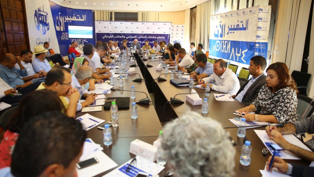 وإنها مناسبة أكد فيها المكتبان السياسي والفيدرالي بأن اختزال الصراع ضد الأمين العام للحزب لا يستهدف الأمين العام بل يستهدف بالأساس مؤسسات ومشروع الحزب بكامله، وهو السيناريو الذي تم توضيبه منذ شهور بتحالف ريعي مصالحي لا علاقة له بالأهداف السياسية التي تأسس من أجلها الحزب.