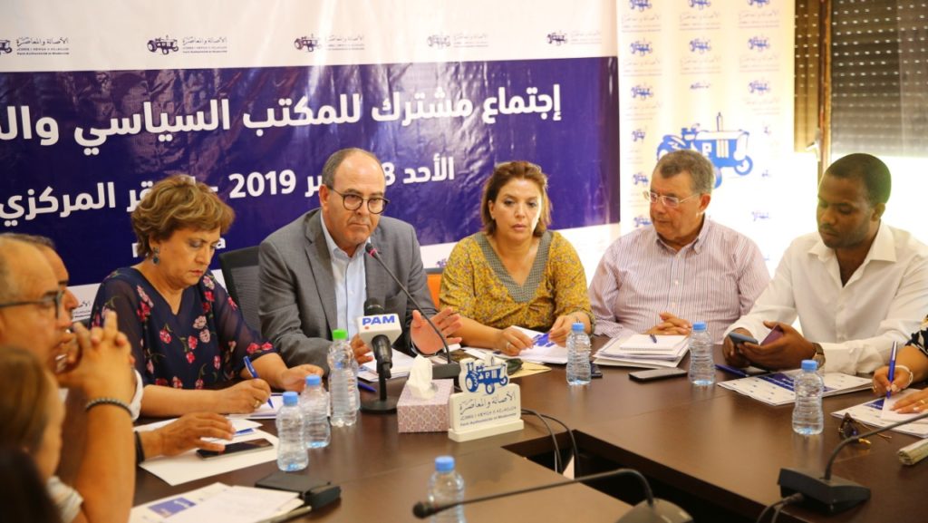 عقد المكتبان السياسي والفيدرالي لحزب الأصالة والمعاصرة يوم الأحد 08 شتنبر2019 اجتماعا مشتركا بالمقر المركزي للحزب بالرباط برئاسة الأمين العام السيد حكيم بن شماش. وقد استهل الاجتماع بقراءة الفاتحة ترحما على أرواح المواطنين الذين قضوا نحبهم على اثر فاجعة انقلاب حافلة على مستوى وادي دمشان بالجماعة الترابية الخنك بإقليم الراشيدية.