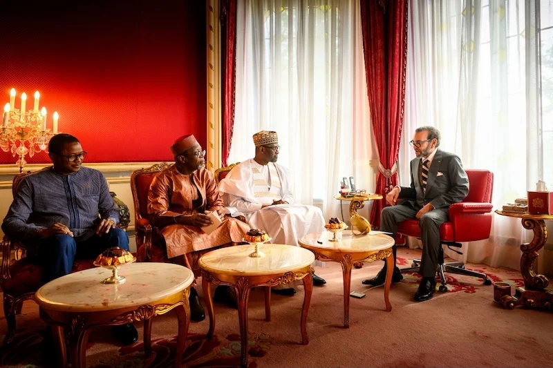 استقبل صاحب الجلالة الملك محمد السادس، نصره الله، اليوم الاثنين بالقصر الملكي بالرباط، وزراء الشؤون الخارجية للبلدان الثلاثة الأعضاء في تحالف دول الساحل، السيد كاراموكو جون ماري تراوري، وزير الشؤون الخارجية والتعاون الإقليمي والبوركينابيين في الخارج لبوركينا فاسو، والسيد عبد الله ديوب، وزير الشؤون الخارجية والتعاون الدولي لجمهورية مالي، والسيد باكاري ياوو سانغاري، وزير الشؤون الخارجية والتعاون والنيجريين في الخارج بالحكومة الانتقالية لجمهورية النيجر.