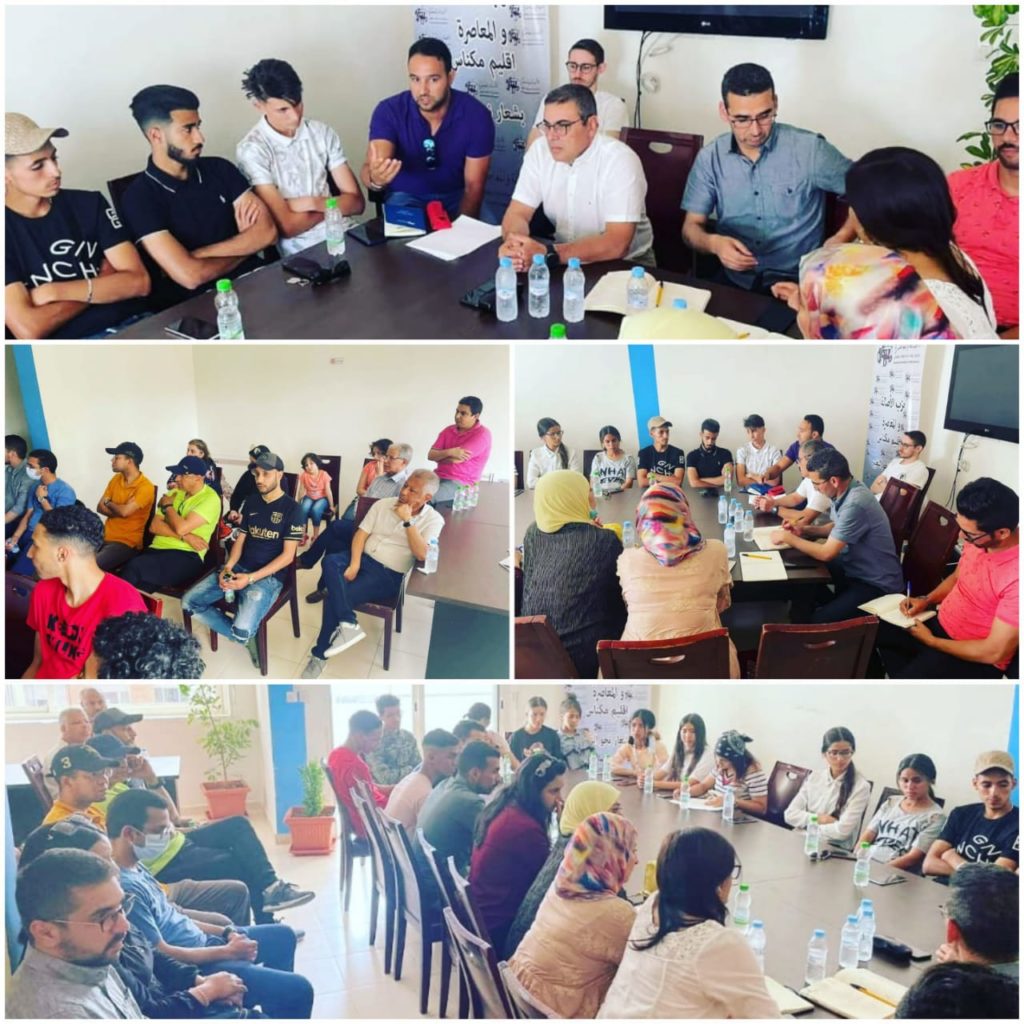 السيد “فيصل بن تورتو” عبر عن افتخاره بوجود شباب في المستوى الذي يرقى له الحزب، مقدماً للحضور تصوراً عاما لخطة الحزب إقليميا تجلت في إنشاء لجان بمختلف المجالات ، عززتها اقتراحات عملية من الشباب صبت في ضرورة النهوض بالأنشطة الرياضية والثقافية كونها القاطرة الأساس التي تستجيب لتطلعات شباب مكناس كاستراتيجية لبناء الثقة من جديد بالعمل السياسي والسياسيين، من جهة، ولتعزيز مبدأ تكافؤ الفرص والديمقراطية التشاركية من جهة أخرى..