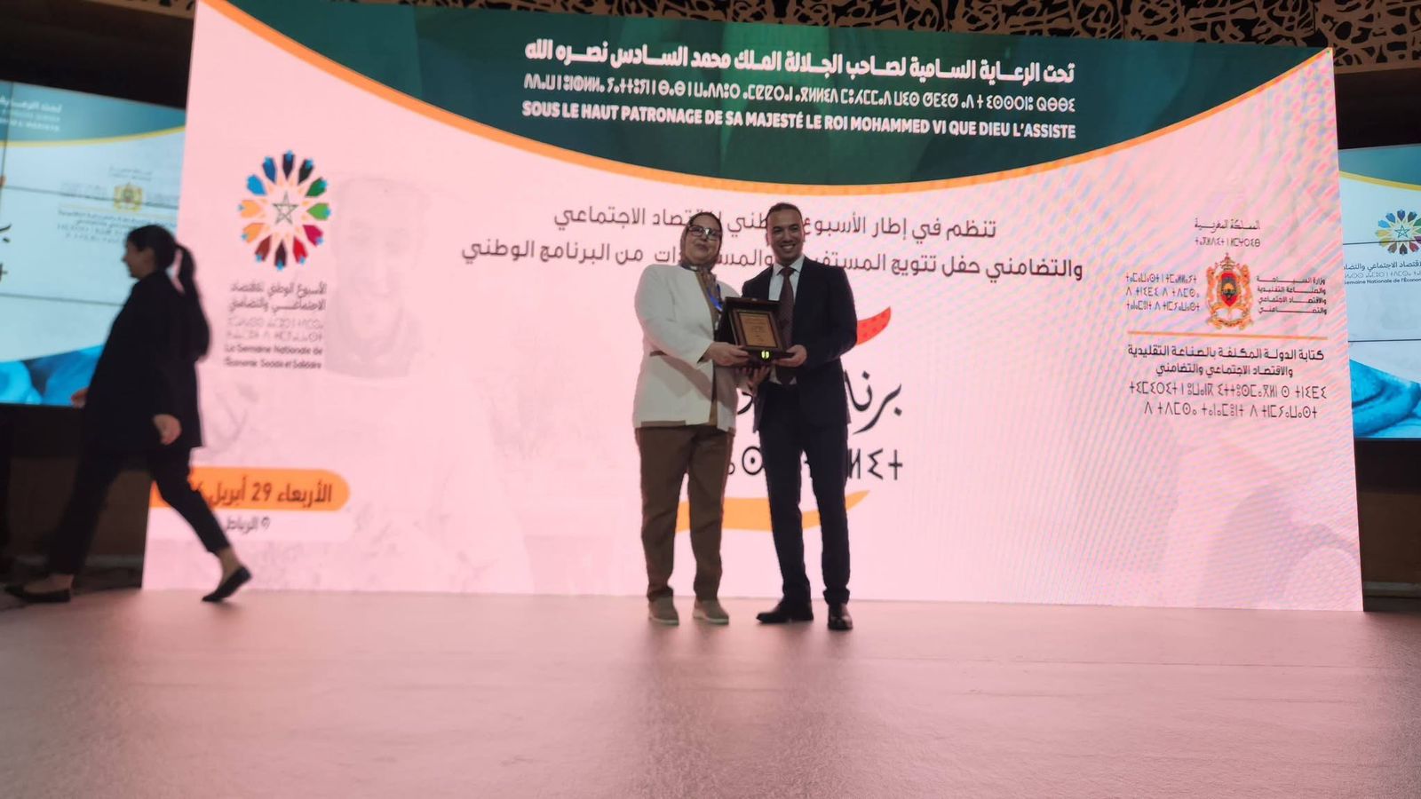 وتسلمت حجوبي درع التتويج نيابة عن رئيس مجلس الجهة وباقي مكونات المجلس، من طرف كاتب الدولة المكلف بالصناعة التقليدية والاقتصاد الاجتماعي والتضامني الحسن السعدي، وذلك بحضور أزيد من 300 فاعل يمثلون مختلف جهات المملكة، إلى جانب عدد من الشركاء من القطاعين العام والخاص.