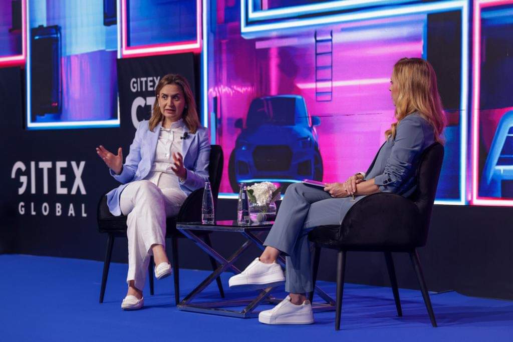 حضرت، وزيرة الانتقال الرقمي وإصلاح الإدارة، غيثة مزور، جلسة حوارية حول “تعزيز الابتكار التكنولوجي متعدد القطاعات والتحول الرقمي” المنعقدة على هامش فعاليات GITEX Global ، بدبي.