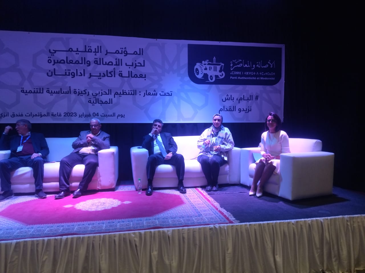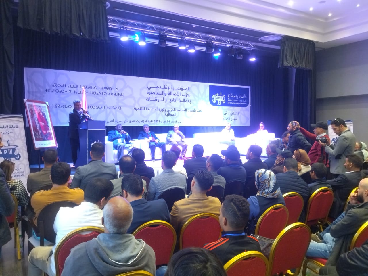 انعقدت اليوم السبت 04 فبراير 2023؛ أشغال المؤتمر الإقليمي لحزب الأصالة والمعاصرة بعمالة أكادير إداوتنان؛ تحت إشراف الأمين الجهوي السيد حميد وهبي؛ وعضو المكتب السياسي السيد محمد أوضمين؛ وبحضور رئيس الفريق النيابي السيد أحمد التويزي؛ وعضو الفريق النيابي حنان الماسي؛ وعدد من القيادات الجهوية والإقليمية للحزب بجهة سوس ماسة.