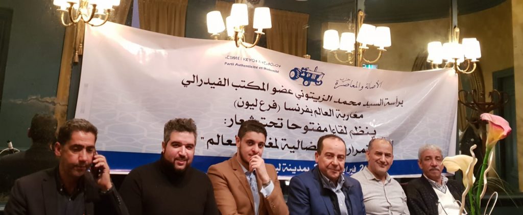 ترأس محمد زيتوني عضو المكتب الفيدرالي لحزب الأصالة والمعاصرة، يوم السبت 02 فبراير 2019، لقاء مفتوحا نظمه مغاربة العالم بفرنسا فرع مدينة ليون، تحت شعار “الاستمرارية النضالية لمغاربة العالم”، وذلك بحضور حمزة شاوي وأحمد البداوي وحسن بوحو، وكريم عراقي وعبد العزيز الدحسي.