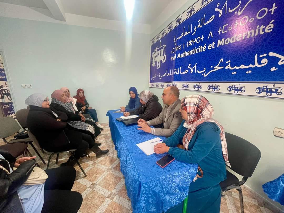 تنزيلا لبرنامج الأمانة العامة الإقليمية لحزب الأصالة والمعاصرة بتنغير، وفي إطار الأبواب المفتوحة التي دعت إليها القيادة الجماعية للحزب تحت شعار “تواصل القرب مدخل لاشراك المواطن في تحقيق التنمية”، نظمت الأمانة الإقليمية بتنغير، يوم الأحد 24 نونبر 2024، لقاء تواصليا لنساء الأصالة والمعاصرة، أطرته سعاد ايت علي عضو المجلس الوطني لمنظمة الأصالة والمعاصرة وعضو مجلس جهة درعة- تافيلالت، تحت إشراف محمد منصوري الأمين الإقليمي بتنسيق مع أعضاء المجلس الوطني وبحضور كل من محند الطاهري وعبد الصمد حدا.