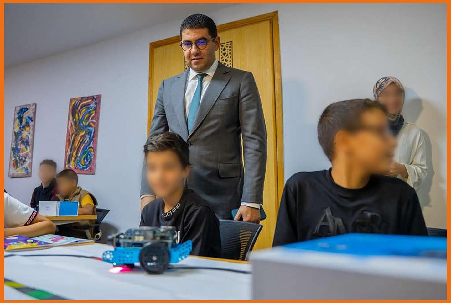أ‎شرف، وزير الشباب والثقافة والتواصل، محمد المهدي بنسعيد، بدار الشباب حسنونة بطنجة، إلى جانب الوزيرة المنتدبة المكلفة بالانتقال الرقمي وإصلاح الإدارة، أمل الفلاح السغروشني، على إعطاء الانطلاقة الرسمية للبرنامج الوطني لتكوين الأطفال في مجالي الرقمنة والذكاء الاصطناعي.