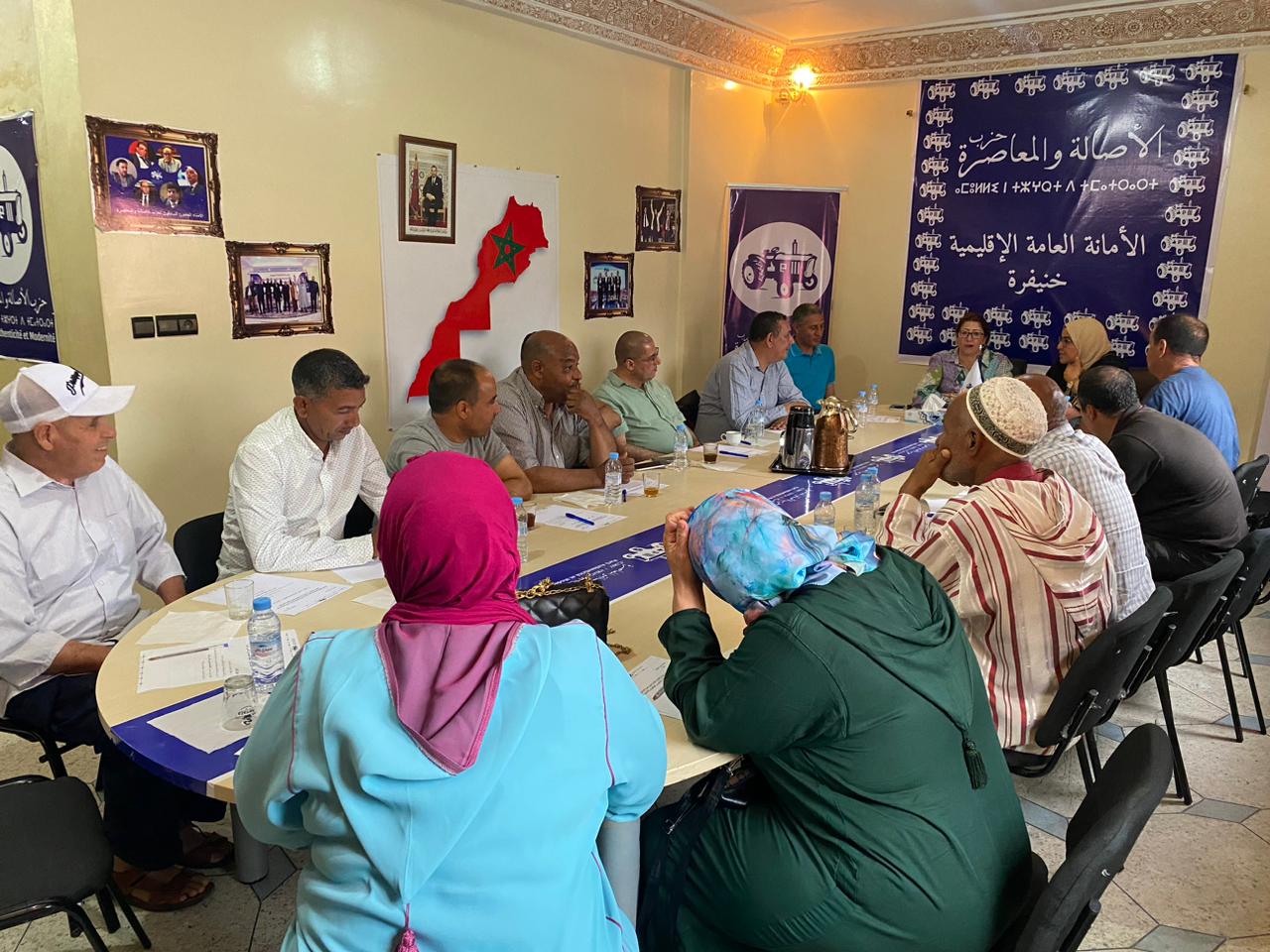 احتضن المقر الإقليمي لحزب الأصالة والمعاصرة بخنيفرة، أمس الجمعة 7 يونيو 2024، لقاء تواصليا أطرته فاطمة خداوي، عضو المجلس الوطني لمنظمة نساء الحزب ورئيسة وكالة الصندوق الوطني للضمان الاجتماعي بخنيفرة، حول موضوع “التغطية الصحية بين الأمس واليوم”، وذلك لفائدة الفلاحين والحرفيين والمقاولين الذاتيين.