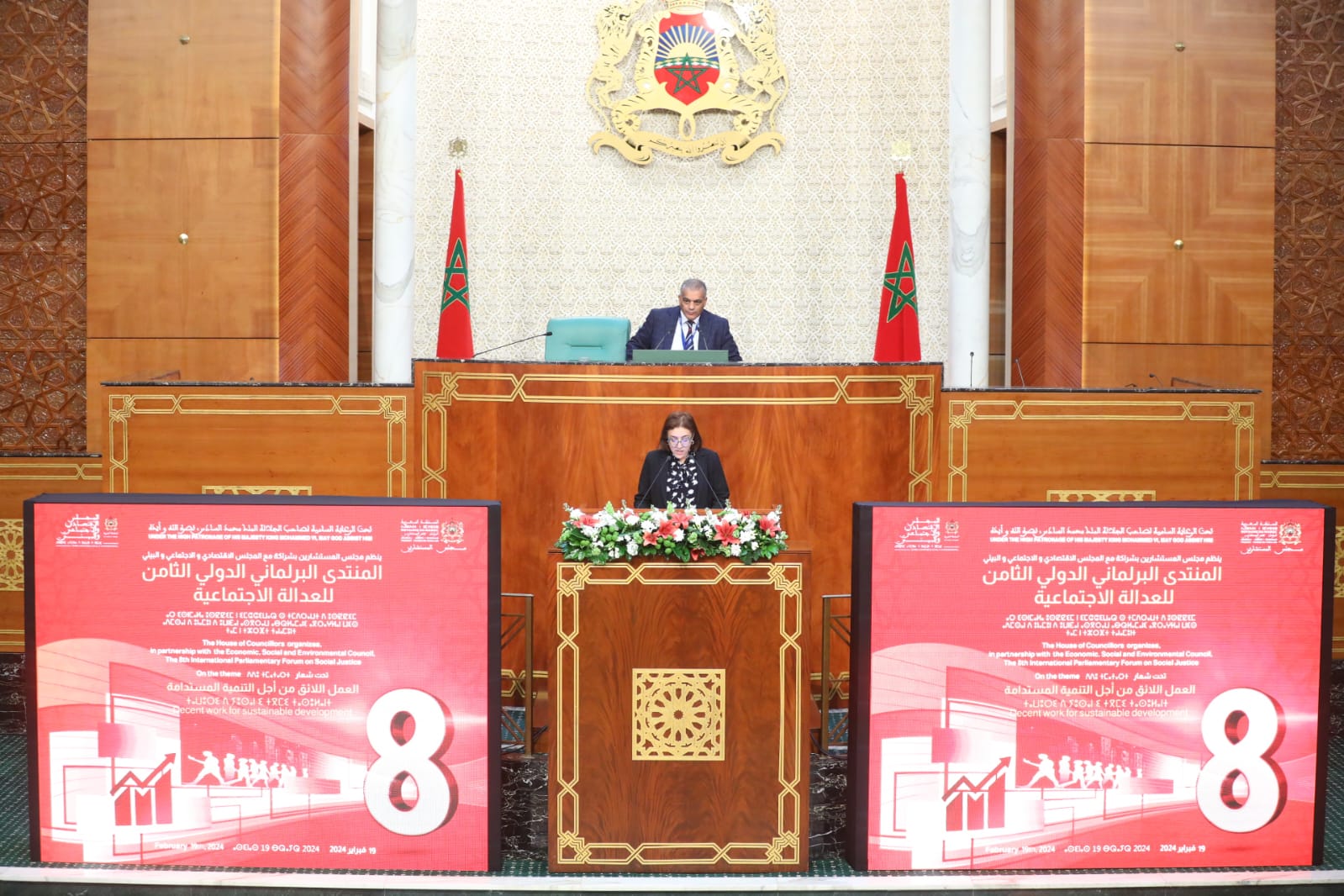 افتتحت، اليوم الاثنين 19 فبراير 2024 بمقر مجلس المستشارين، أشغال الدورة الثامنة للمنتدى البرلماني الدولي للعدالة الاجتماعية، الذي ينظم تحت الرعاية السامية لصاحب الجلالة الملك محمد السادس.