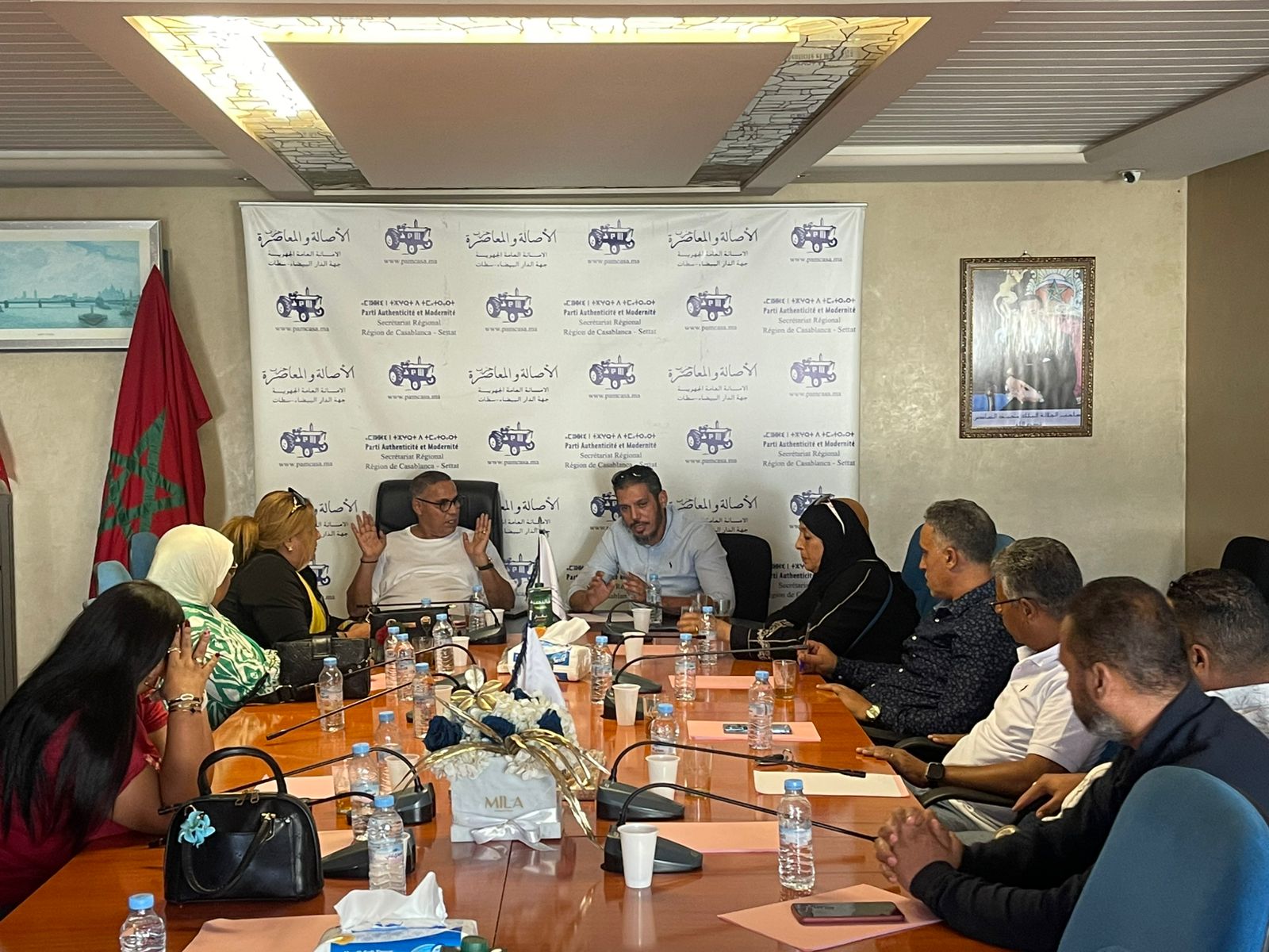 يواصل؛ حزب الأصالة والمعاصرة ديناميته التنظيمية على مستوى عمالة مقاطعات بن امسيك، حيث ترأس النائب البرلماني والأمين الإقليمي للحزب مصطفى جداد، مساء الاثنين 01 شتنبر الجاري، لقاء تواصليا مع السيدات والسادة أعضاء الأمانة المحلية بمنطقة السالمية، وذلك بالمقر الجهوي للحزب في الدار البيضاء، بحضور الأمين المحلي نعمان حسون.