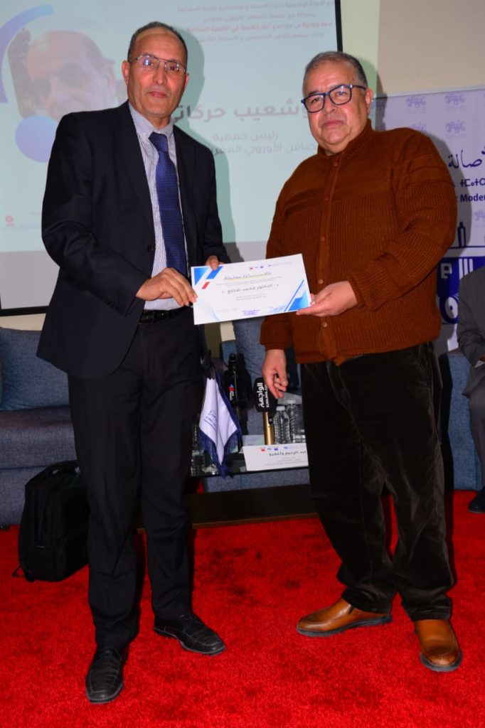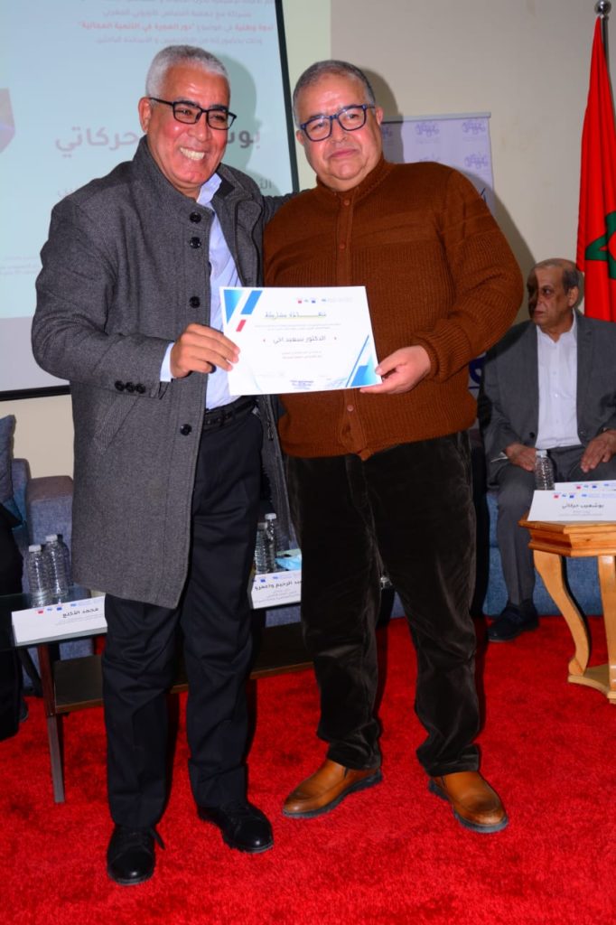ووجه ترحيبه للأستاذ والفاعل المدني بوشعيب حركاتي رئيس جمعية التضامن الأوروبي المغربي والذي استمر طيلة عقود يتقدم الصفوف الأمامية في الوطنية ونكران الذات وخدمة الإنسانية بمختلف ربوع المملكة، ولازالت بصمته بإقليم قلعة السراغنة.