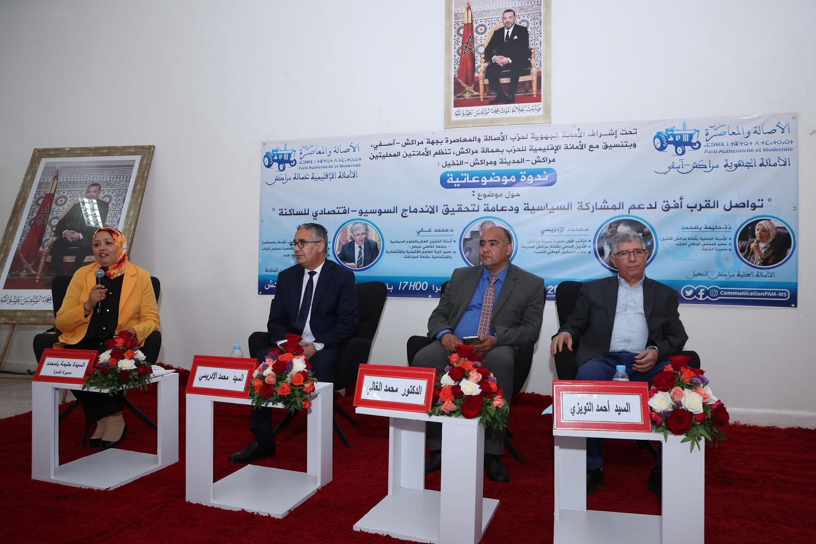 هذه الندوة التي سعى منظموها إلى الإسهام في رفع الوعي المجتمعي نحو المشاركة السياسية وتواصل القرب، شهدت مشاركة محمد الإدريسي نائب رئيس مجلس جماعة مراكش إلى جانب محمد غالي عميد كلية العلوم القانونية والاقتصادية والاجتماعية بقلعة السراغنة، في تأطير الندوة التي أنيط للسيدة حليمة با محمد الأمينة المحلية للحزب بالنخيل مراكش وعضو المجلس الوطني للحزب، تسيير فعالياتها.