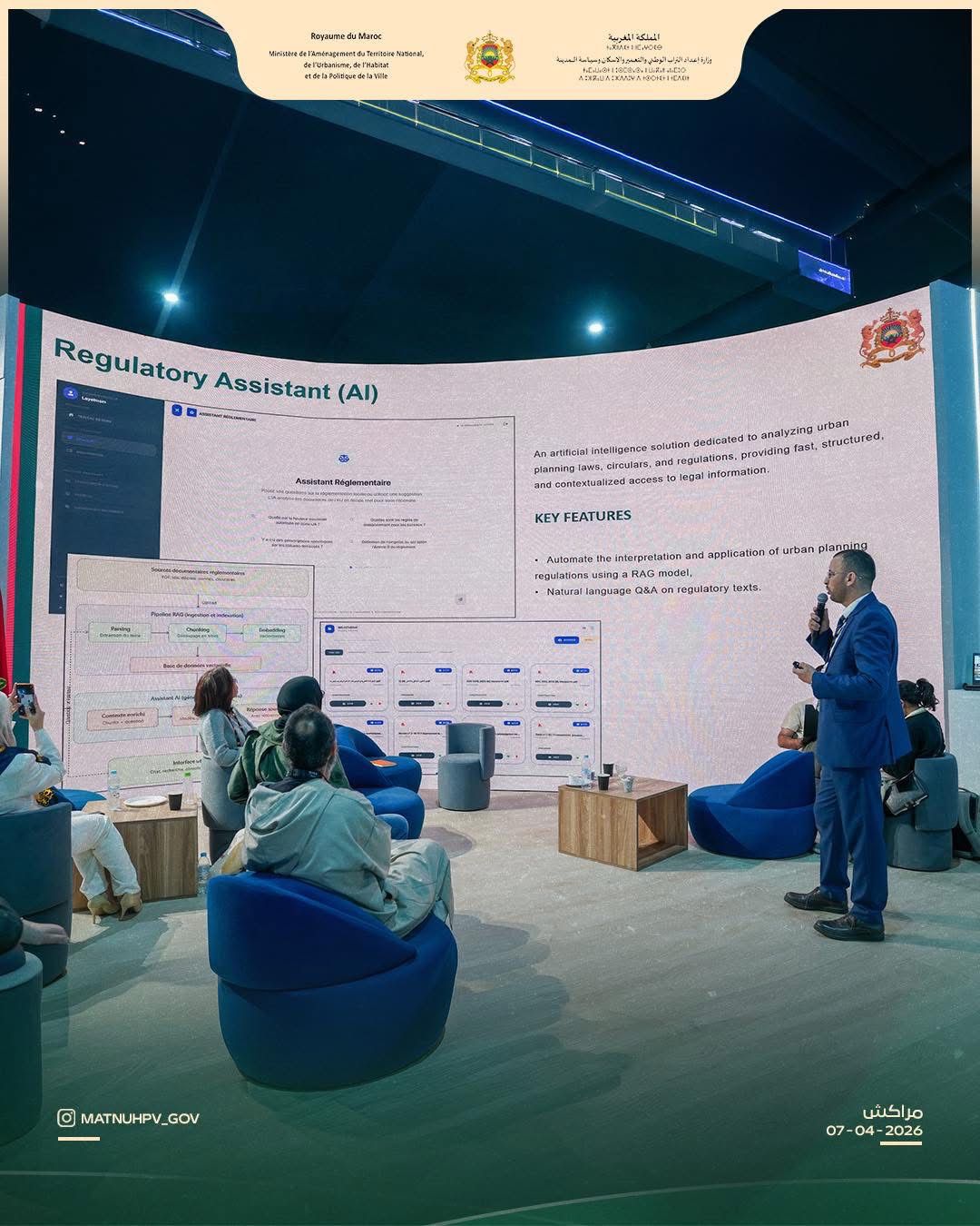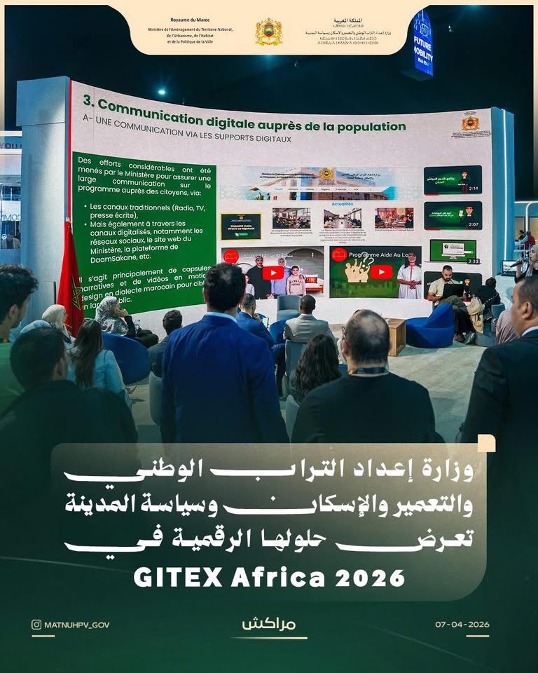 في إطار فعاليات GITEX Africa Morocco 2026، قدمت وزارة إعداد التراب الوطني والتعمير والإسكان وسياسة المدينة عرضا حول المنصة الرقمية daamsakane.ma الخاصة ببرنامج “دعم سكن”، إلى جانب الحلول الرقمية التي توفرها الوكالات الحضرية، وذلك بهدف تبسيط الخدمات وتقريبها من المواطنين.