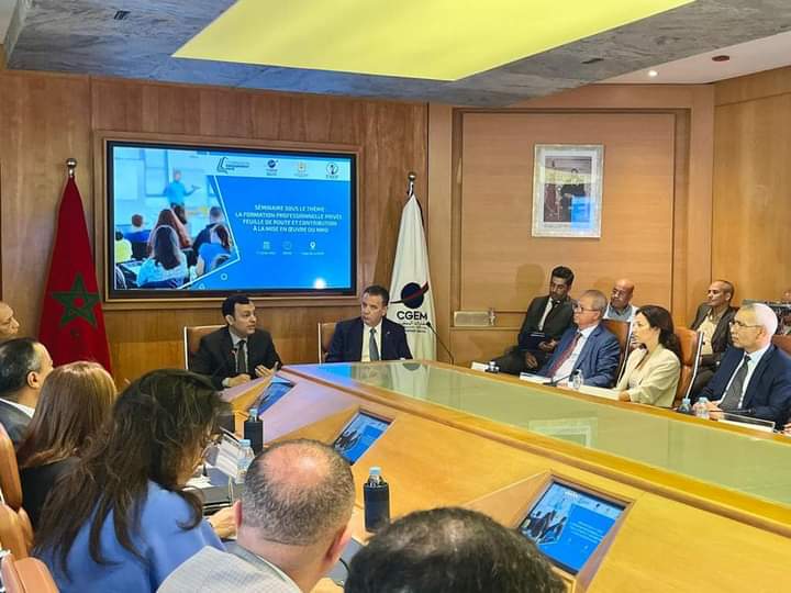 بدعوة من الفيدرالية المغربية للتكوين المهني الخاص؛ حضر وزير وزير الإدماج الاقتصادي والمقاولة الصغرى والشغل والكفاءات، يونس السكوري؛ اليوم الإثنين 17 يوليوز 2023، أشغال اليوم الدراسي المنظم حول موضوع: “إسهام التكوين المهني الخاص في تفعيل خارطة الطريق الخاصة بالتكوين المهني”.
