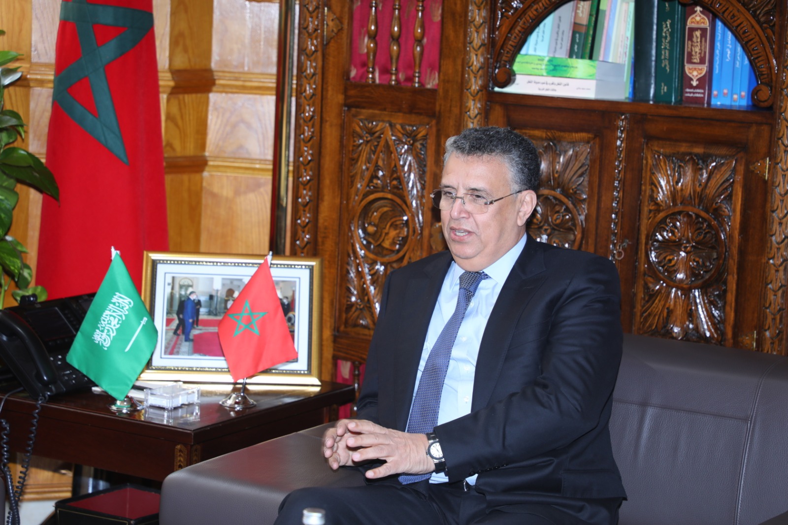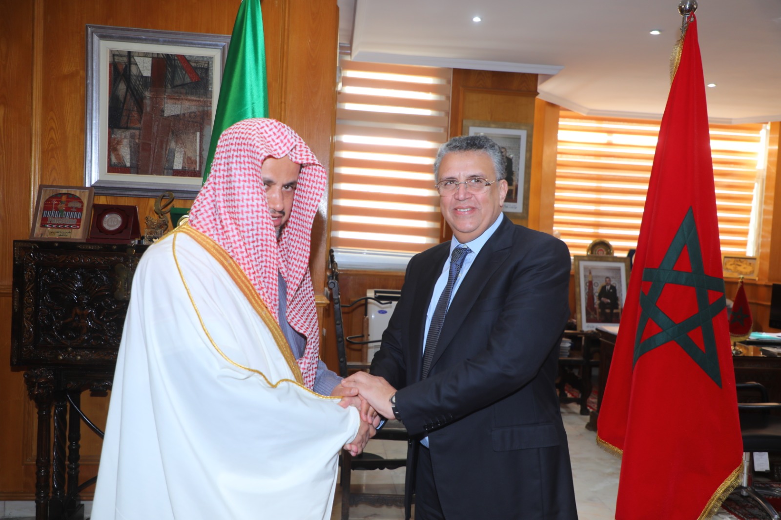 تعزيزاً لعلاقات التعاون في مجال العدالة بين المملكة المغربية والمملكة العربية السعودية الشقيقة، استقبل وزير العدل السيد عبد اللطيف وهبي، صباح يومه الثلاثاء 14 فبراير 2023، بمقر الوزارة، السيد سعود بن عبد الله المعجب؛ النائب العام (الوكيل العام) للسعودية؛ الذي يقوم بزيارة عمل لبلادنا.