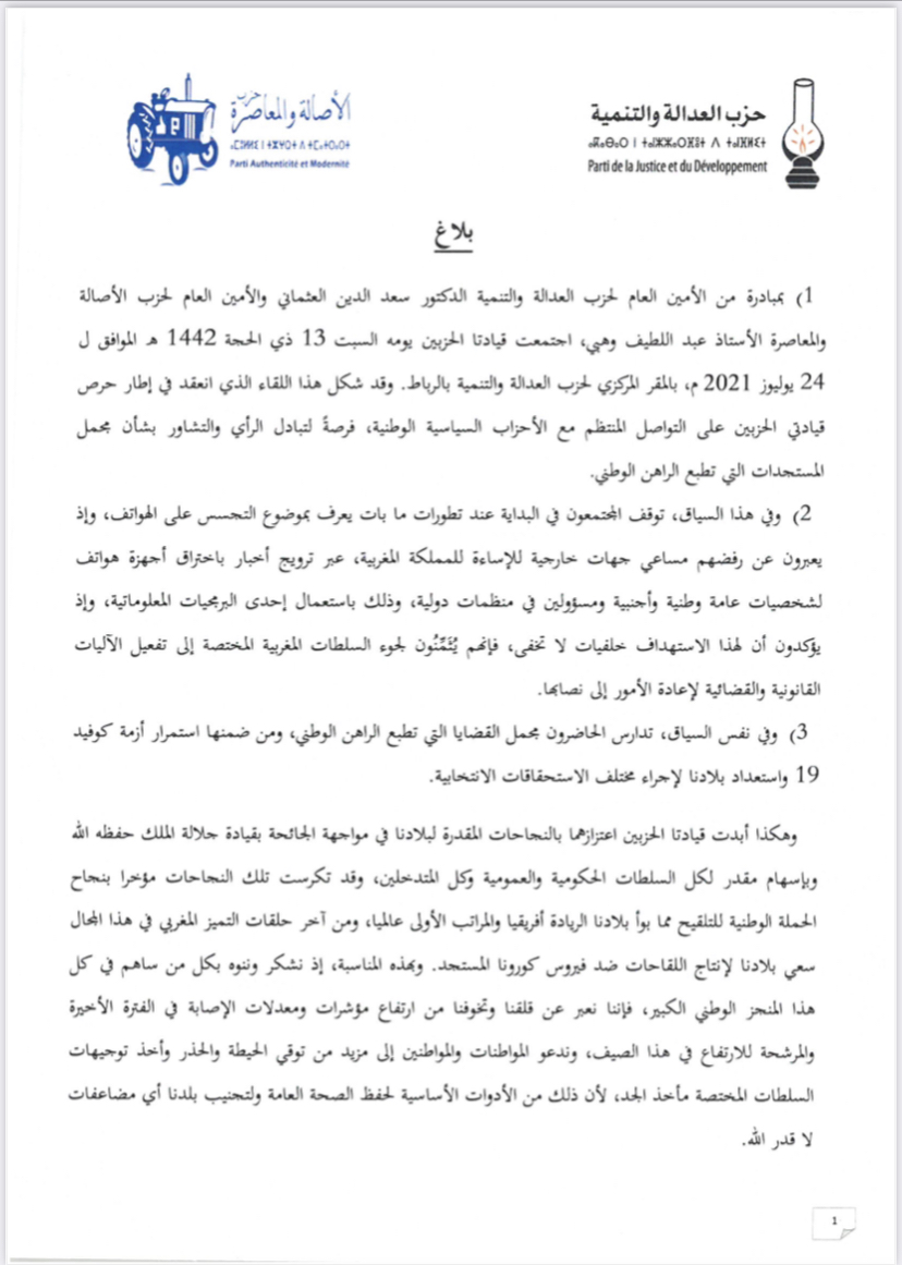 Within this context, the parties engaged in a series of discussions relating to Morocco’s espionage allegations, denouncing at the same time the foreign media outrage aimed at undermining Morocco’s reputation, by promoting serious accusations stipulating Morocco’s usage of a spyware with the purpose of tracking phone conversations connecting several high-profile officials. In addition, the attendees agreed that these allegations were promoted by Morocco’s enemies behind closed corridors, therefore, the competent authorities are to respond accordingly via legal means.
