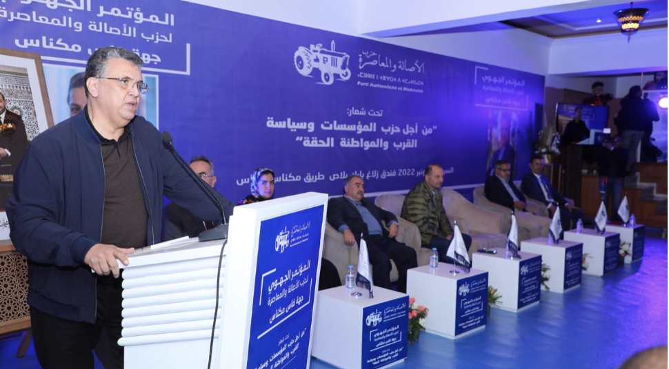 Cet événement organisationnel exceptionnel, pour lequel le slogan « Pour le Parti des Institutions et la Politique de Proximité et de Vraie Citoyenneté », lui a été choisi. Le Secrétaire Général, M. Ouahbi, a débuté son intervention directive en souhaitant la bienvenue aux participants et invités du congrès régionale du parti dans la région Fès-Meknès, les représentants des partis de la majorité et de l’opposition, ainsi il a énuméré les atouts de la ville de Fès, soulignant que cette métropole puissante, qui était source d’influence, a récemment souffert non seulement d’un manque de pluie, mais aussi de nombreuses accumulations qui ont fait souffrir la région à tous les niveaux.