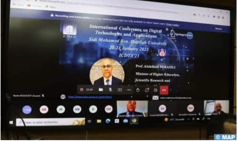 Le Ministre de l’Enseignement Supérieur, de la Recherche Scientifique et de l’Innovation, M. Abdellatif Miraoui, a participé en mode virtuel, vendredi 27 janvier 2023, aux travaux de la conférence internationale de haut niveau sur les Technologies et Applications Numériques, organisée par l’Université Sidi Mohamed Ben Abdellah de Fès.