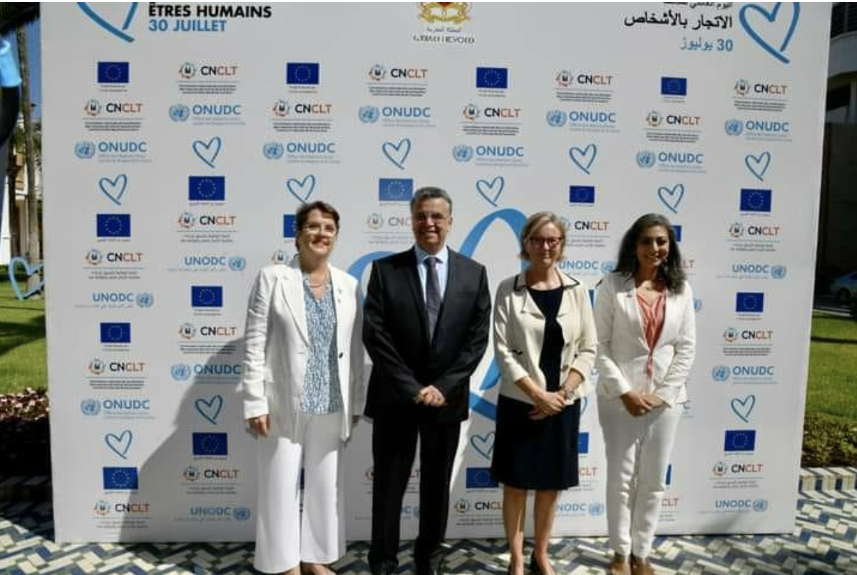 Cette journée était marquée par la participation de la Directrice Régionale pour le Moyen-Orient et l’Afrique du Nord de l’Office des Nations Unies contre la Drogue et le Crime (ONUDC), l’Ambassadrice de l’Union Européenne au Maroc, ainsi que les membres de la Commission nationale chargée de la coordination des mesures de lutte et de prévention contre la traite des êtres humains.