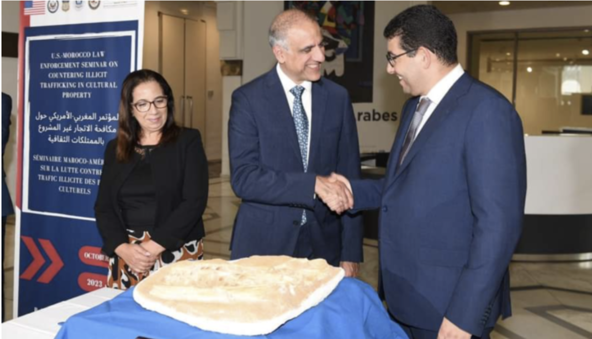 Dans une allocation de circonstance, M. Bensaid a soutenu que cet événement important s’inscrit dans le cadre du Mémorandum d’entente signé entre le Maroc et les États-Unis en 2021, soulignant la nécessité de renforcer le partenariat stratégique entre le ministère et l’ambassade des États-Unis au Maroc afin de lutter contre le trafic illicite des biens culturels.
